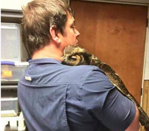 经过一段时间的照顾,这只美国雕鸮慢慢地恢复了健康。创始人出去工作的时候,它便在医院里静静休养。当知道创始人回来的时候它显得异常兴奋,仿佛知道是他救了自己性命。