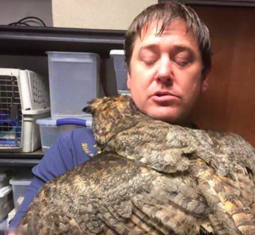 一只美国雕鸮因为受重伤被送往密西西比州的动物救助中心。医生们正在替它进行检查。可能是因为撞到了汽车上面,从而引起了脑震荡。不仅如此,身上还被寄生虫腐蚀,还患了曲霉属症。