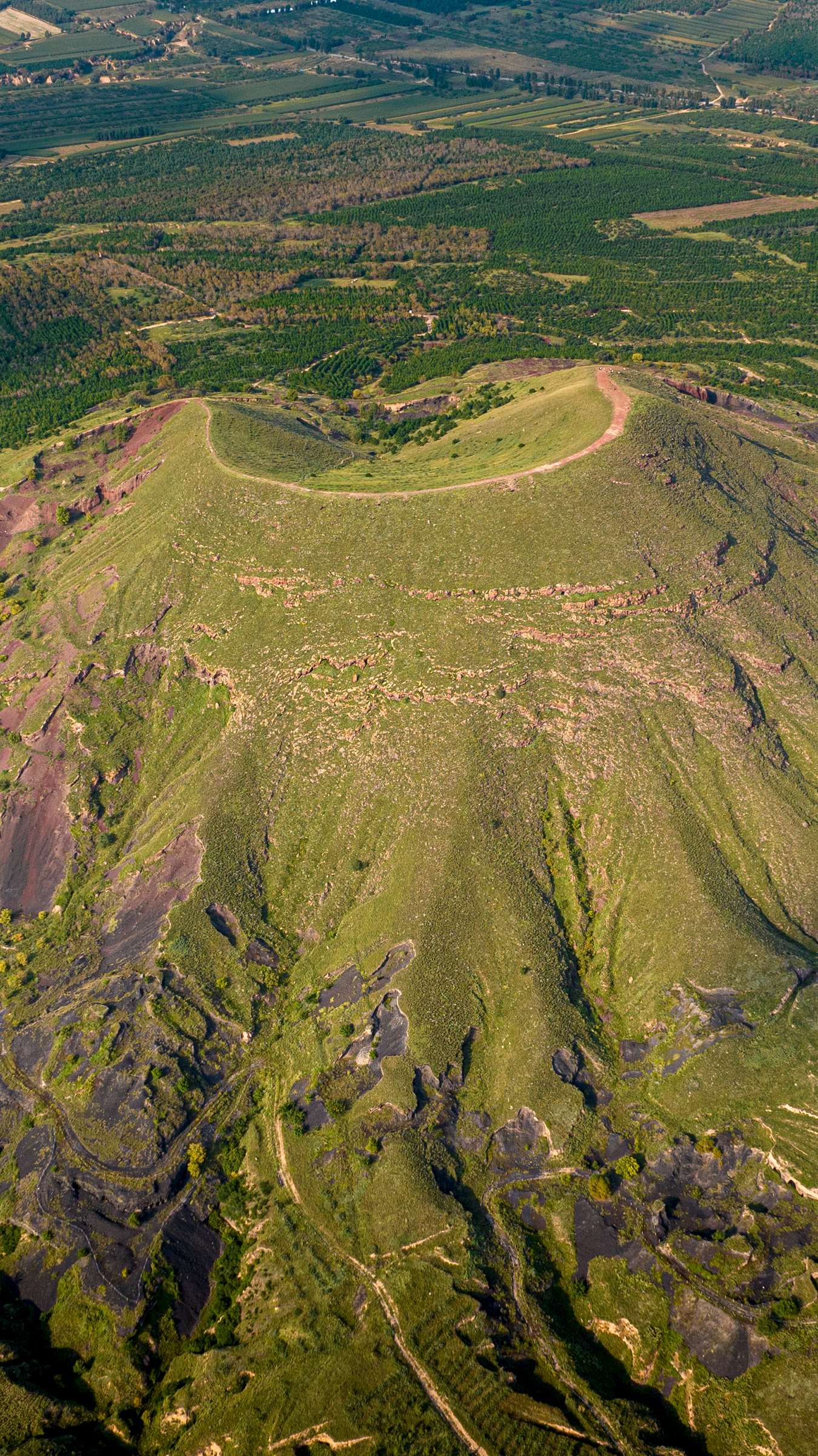 重点来了——狼窝山!这可不是什么狼出没的野林子,而是华北地区最大的火山口,妥妥的“火山界天花板”。站在环形步道上,脚下是亿万年前岩浆冷却留下的玄武岩,眼前是辽阔草原与奇特火山锥交织的奇景,随手一拍就是科幻电影截图。风一吹,草浪翻滚,仿佛大地在低语:“我可是见过岩浆奔腾的狠角色!”
